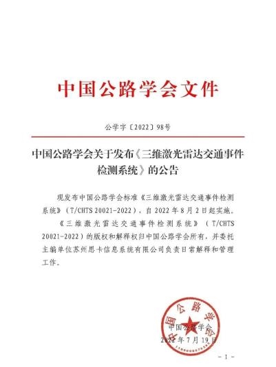 作为中国公路学会《三维激光雷达交通事件检测系统》团体标准的主编单位,SEECAR主导制定了智慧高速领域首个激光雷达应用规范,这项标准填补了路侧场景多传感器融合应用的技术空白,为全国交通数字化转型提供了标准支撑。另外,SEECAR团队近两年来先后参与了交通部行业标准《汽车号牌视频自动识别系统》以及国家标准《视频交通事件检测器》的制定,真正实现了"从技术领先到标准引领"的跨越式发展。